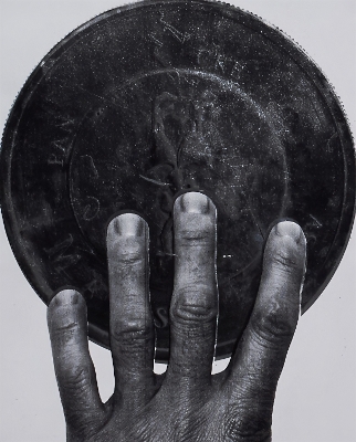 Hand smoothed by coin