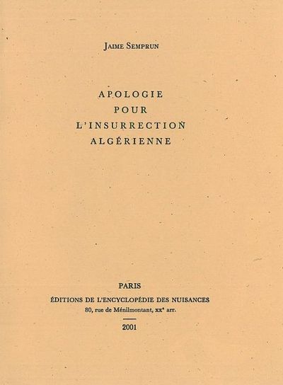 Apologie pour l'insurrection algerienne