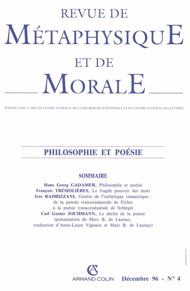Rmm 1996, n 4 - philosophie et poesie