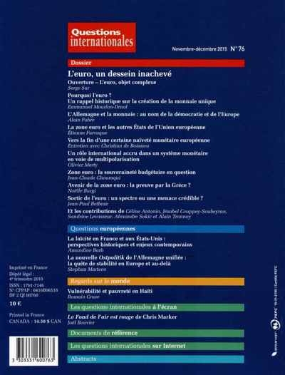 L'euro, un dessein inacheve