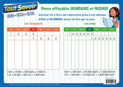 Memo effacable grandeurs et mesures