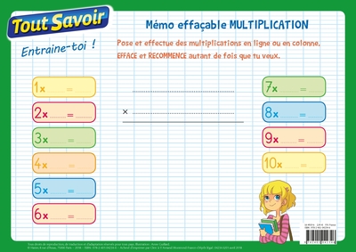 Memo effacable multiplication